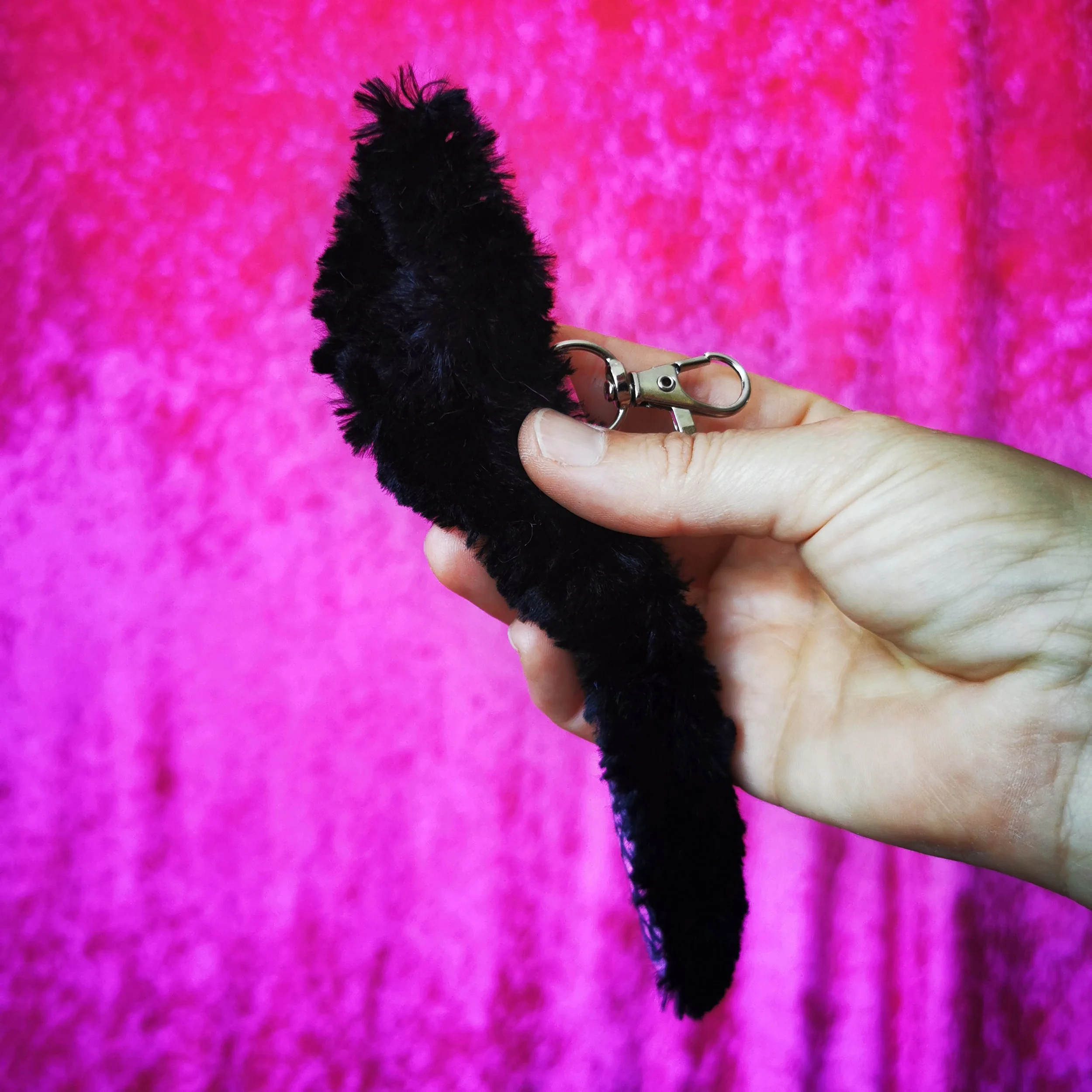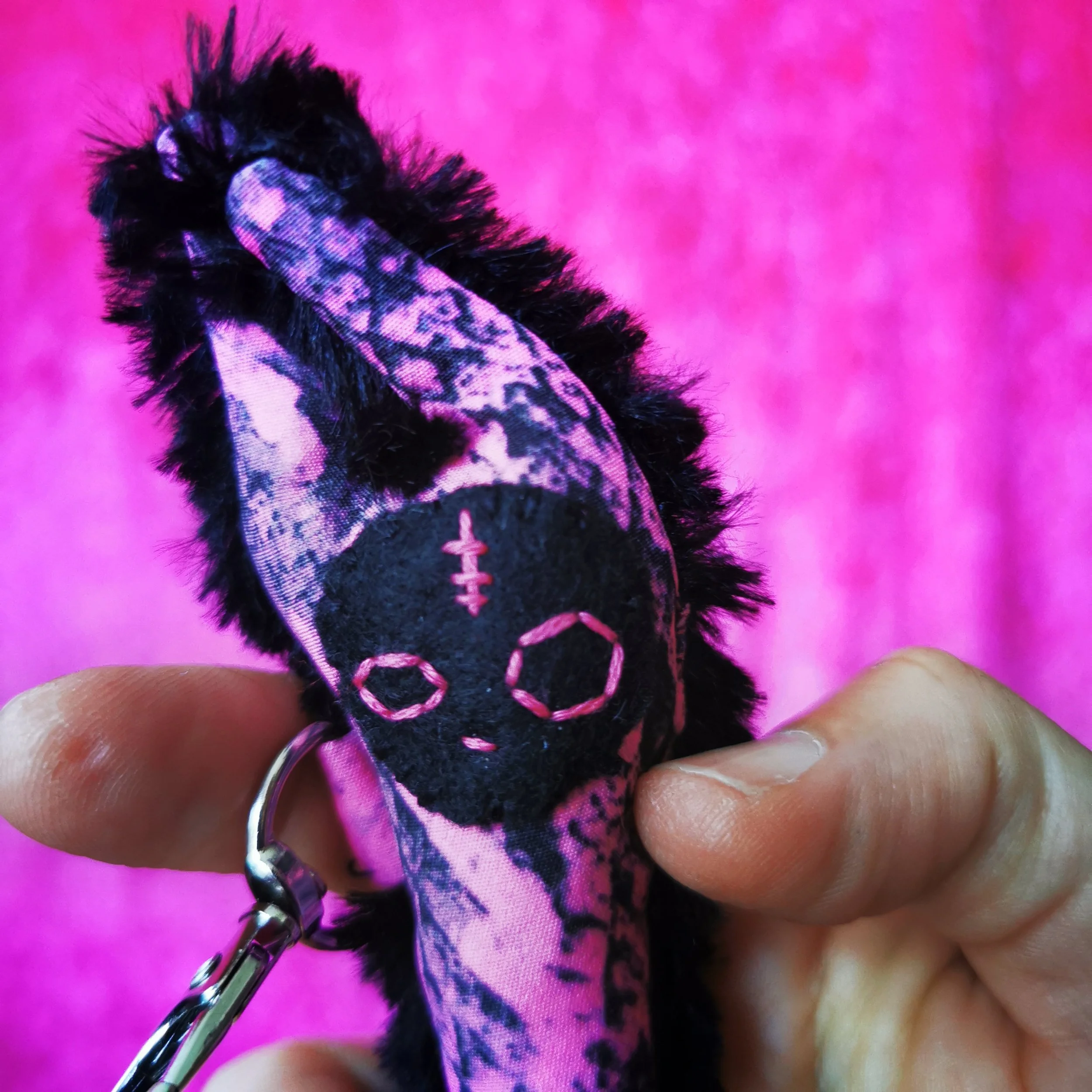 Baal is made of this unique neon pink snake skin spandex and very soft black fur.